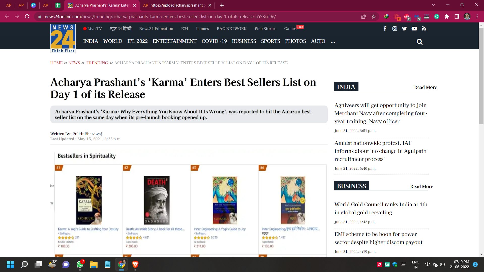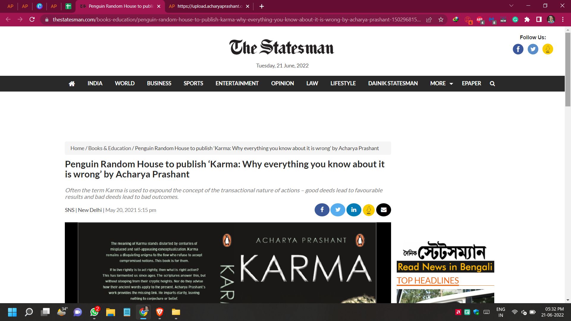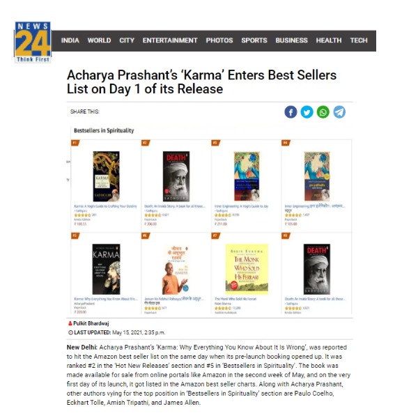 Media Acharya Prashant’s ‘Karma’ Enters Best Sellers List on Day 1 of its ReleaseAcharya Prashant’s ‘Karma’ Enters Best Sellers List on Day 1 of its Release | |