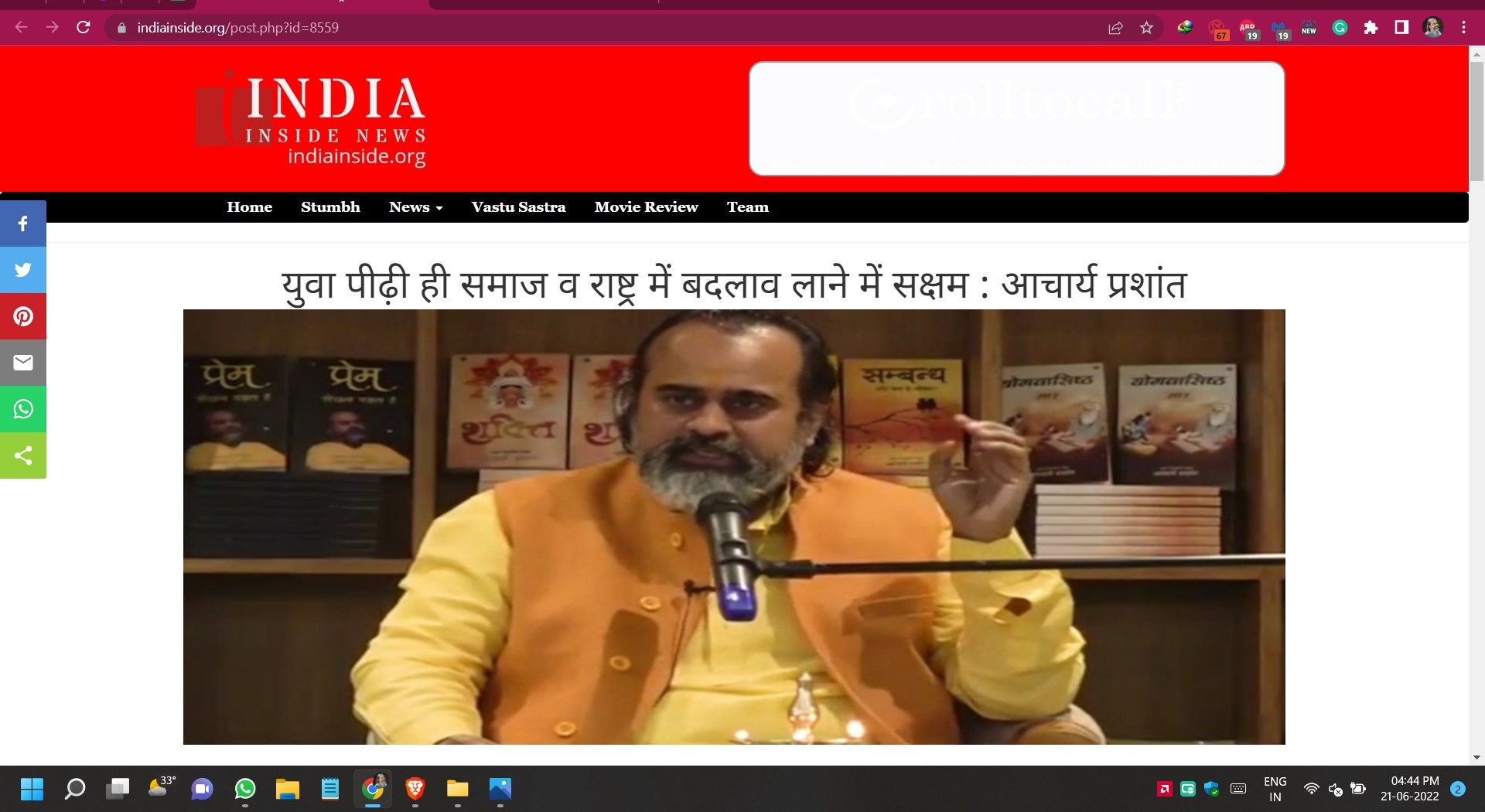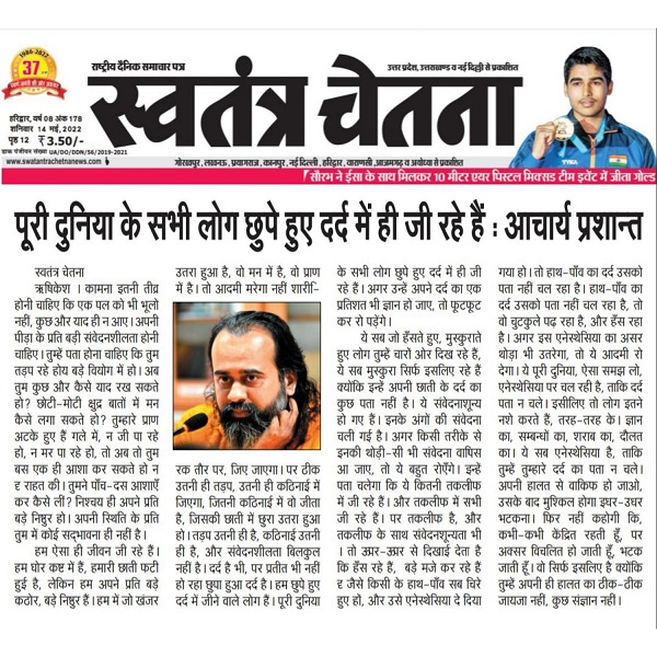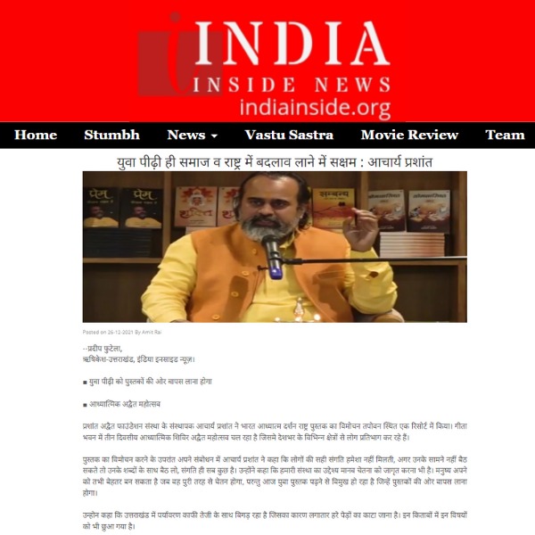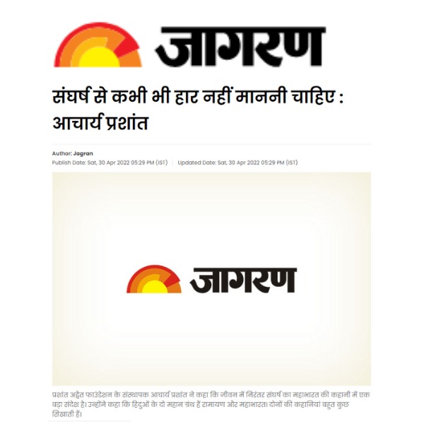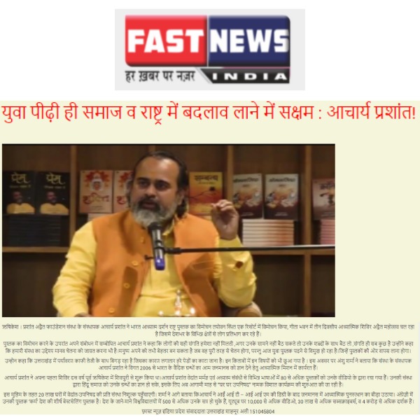 Media युवा पीढ़ी ही समाज व राष्ट्र में बदलाव लाने में सक्षम : आचार्य प्रशांतयुवा पीढ़ी ही समाज व राष्ट्र में बदलाव लाने में सक्षम : आचार्य प्रशांत | |