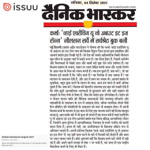 Media Karma by Acharya Prashant opens at #1 on Nielsen BookScan this weekKarma by Acharya Prashant opens at #1 on Nielsen BookScan this week |
