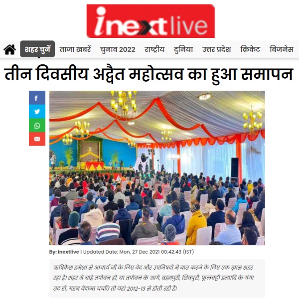 Media तीन दिवसीय अद्वैत महोत्सव का हुआ समापनतीन दिवसीय अद्वैत महोत्सव का हुआ समापन | |