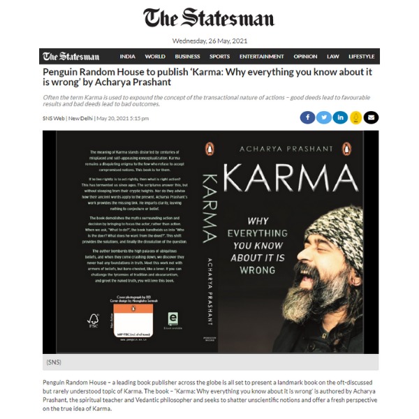 Media Penguin Random House to publish ‘Karma: Why everything you know about it is wrong’ by Acharya PrashantPenguin Random House to publish ‘Karma: Why everything you know about it is wrong’ by Acharya Prashant | |