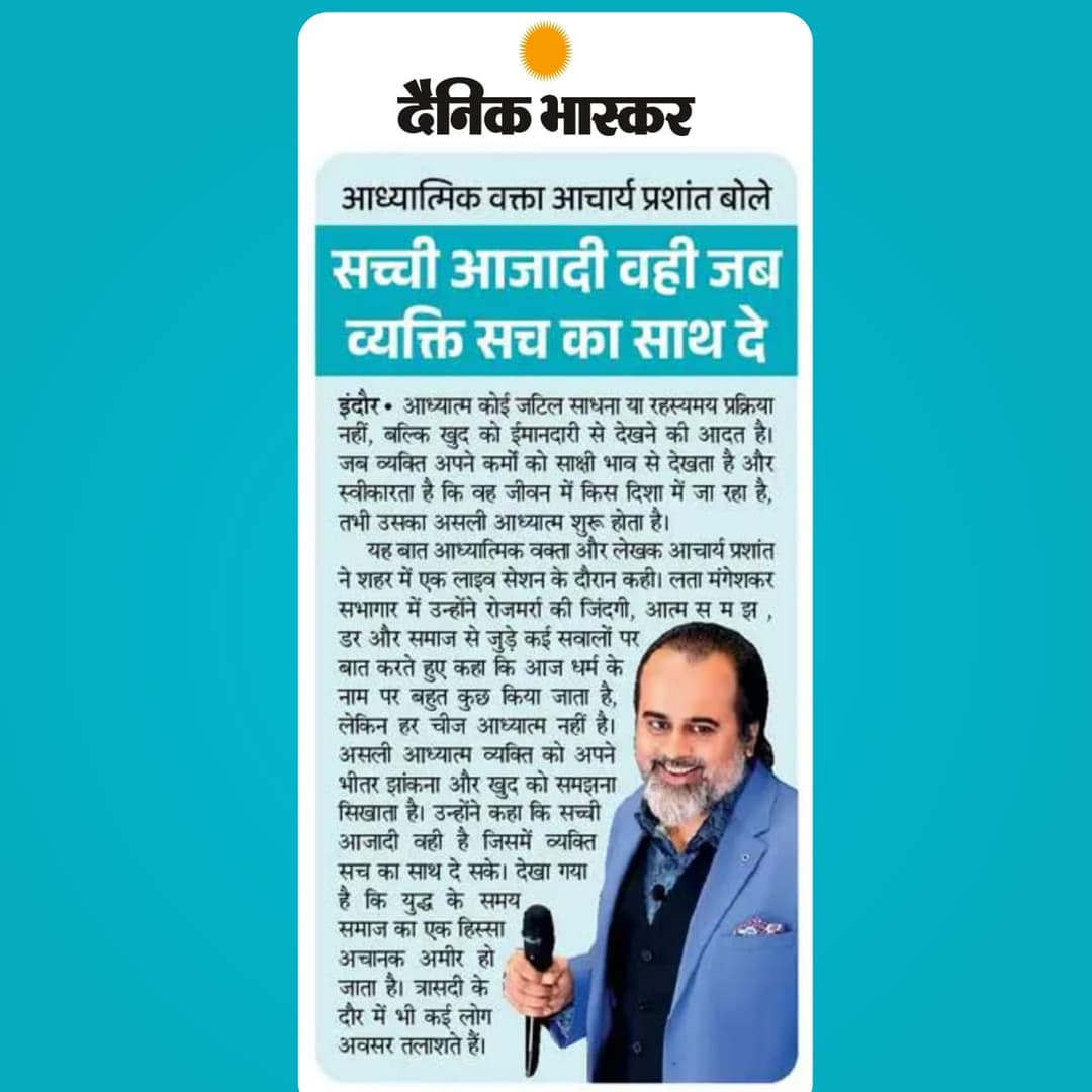 Free Press Journal - "Acharya Prashant: India’s Most Followed Philosophical Voice On Instagram"Free Press Journal - "Acharya Prashant: India’s Most Followed Philosophical Voice On Instagram"20 Aug 2025 [1] [1] [2] [2]