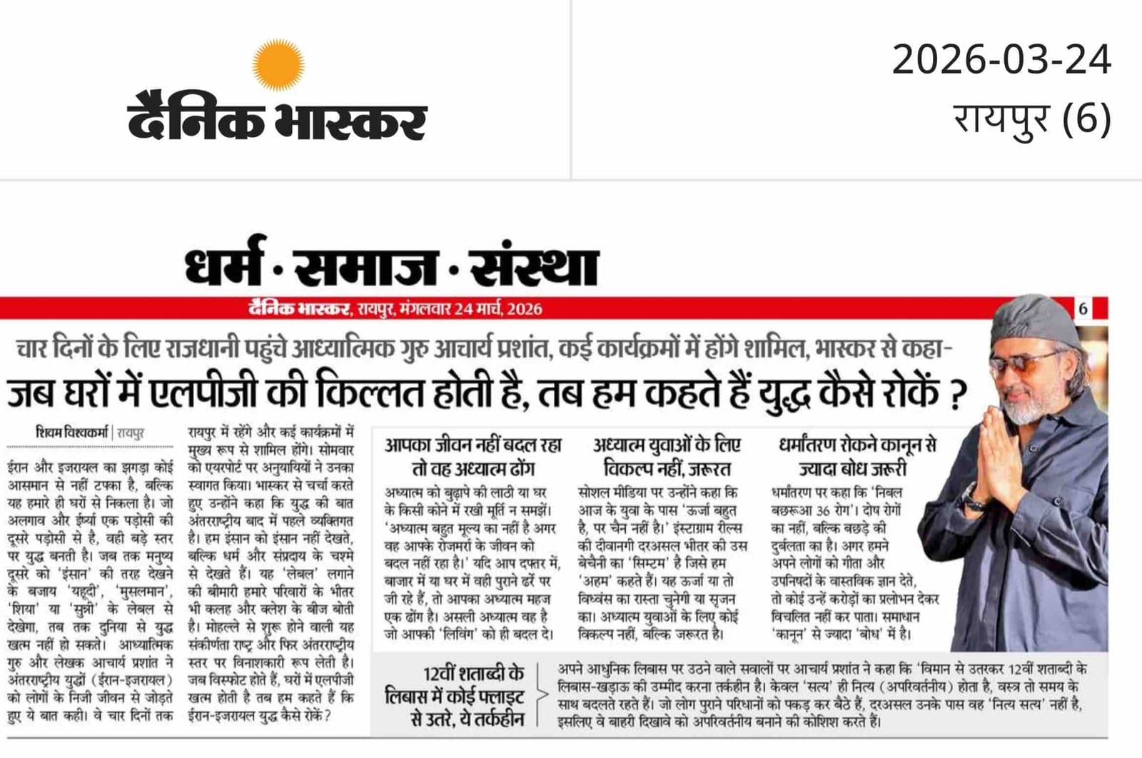 Acharya Prashant’s article 'IIT aur IIM ke baad, Civil Seva se Adhyatmikta ki or: Acharya Prashant bane duniya ke sabse zyada sune jane wale adhyatmik shikshak' published in Dainik BhaskarAcharya Prashant’s article 'IIT aur IIM ke baad, Civil Seva se Adhyatmikta ki or: Acharya Prashant bane duniya ke sabse zyada sune jane wale adhyatmik shikshak' published in Dainik Bhaskar04 Jul 2024 [1] [1]