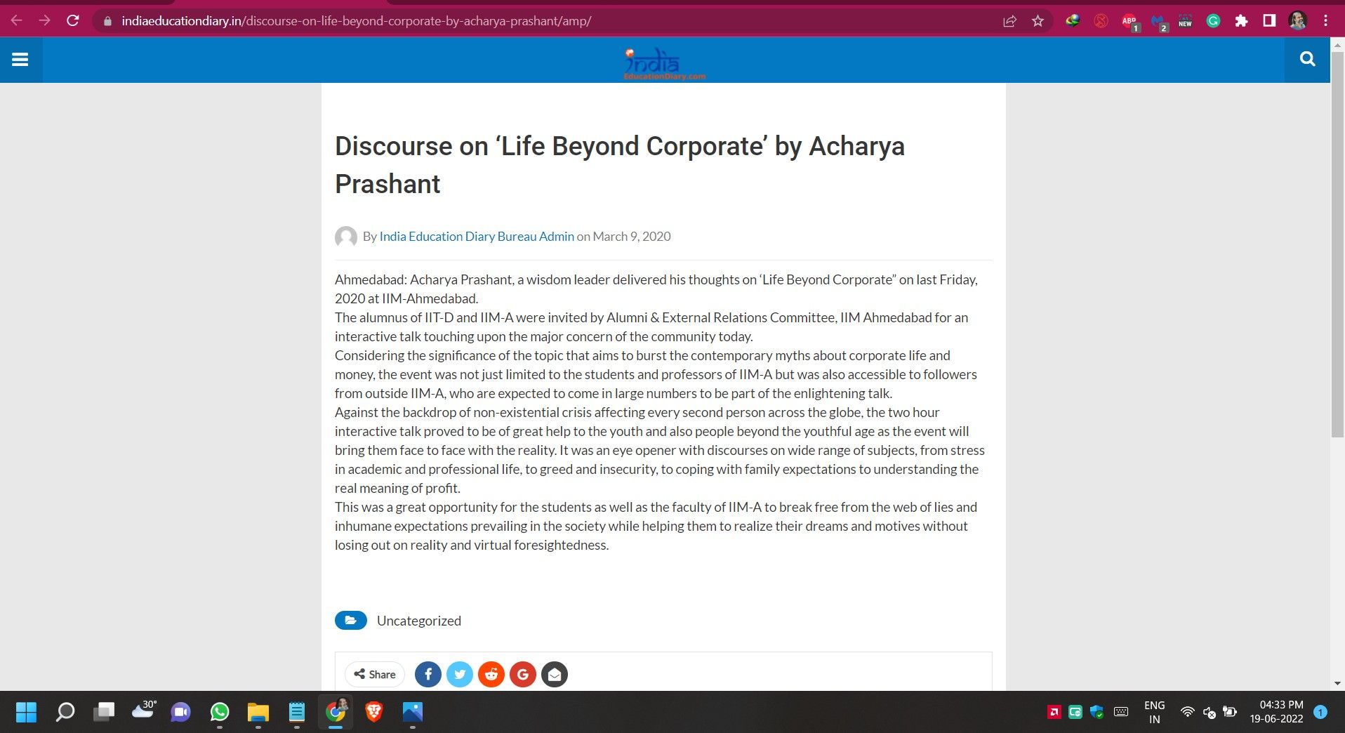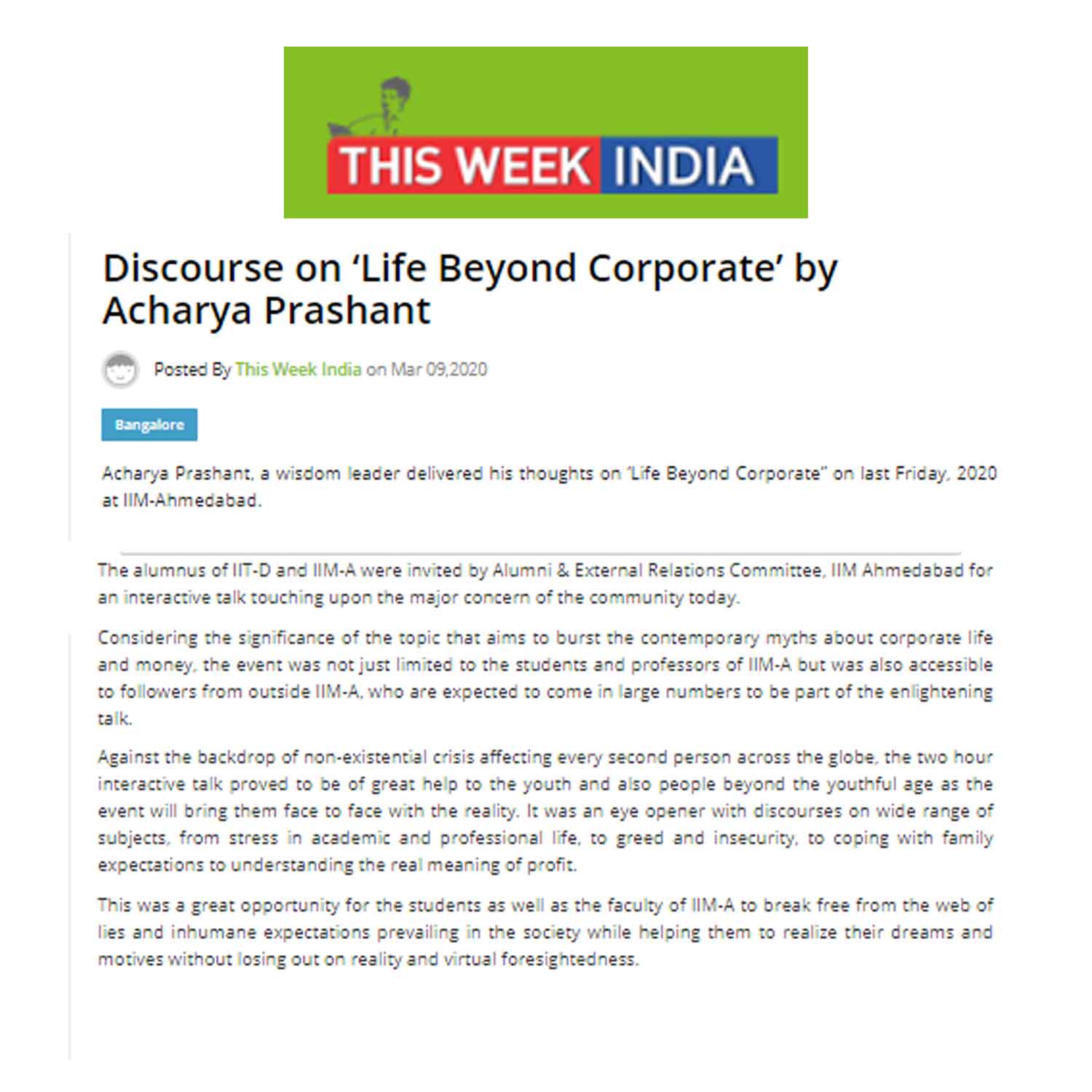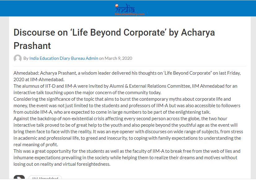 | Media Discourse on ‘Life Beyond Corporate’ by Acharya PrashantDiscourse on ‘Life Beyond Corporate’ by Acharya Prashant | |