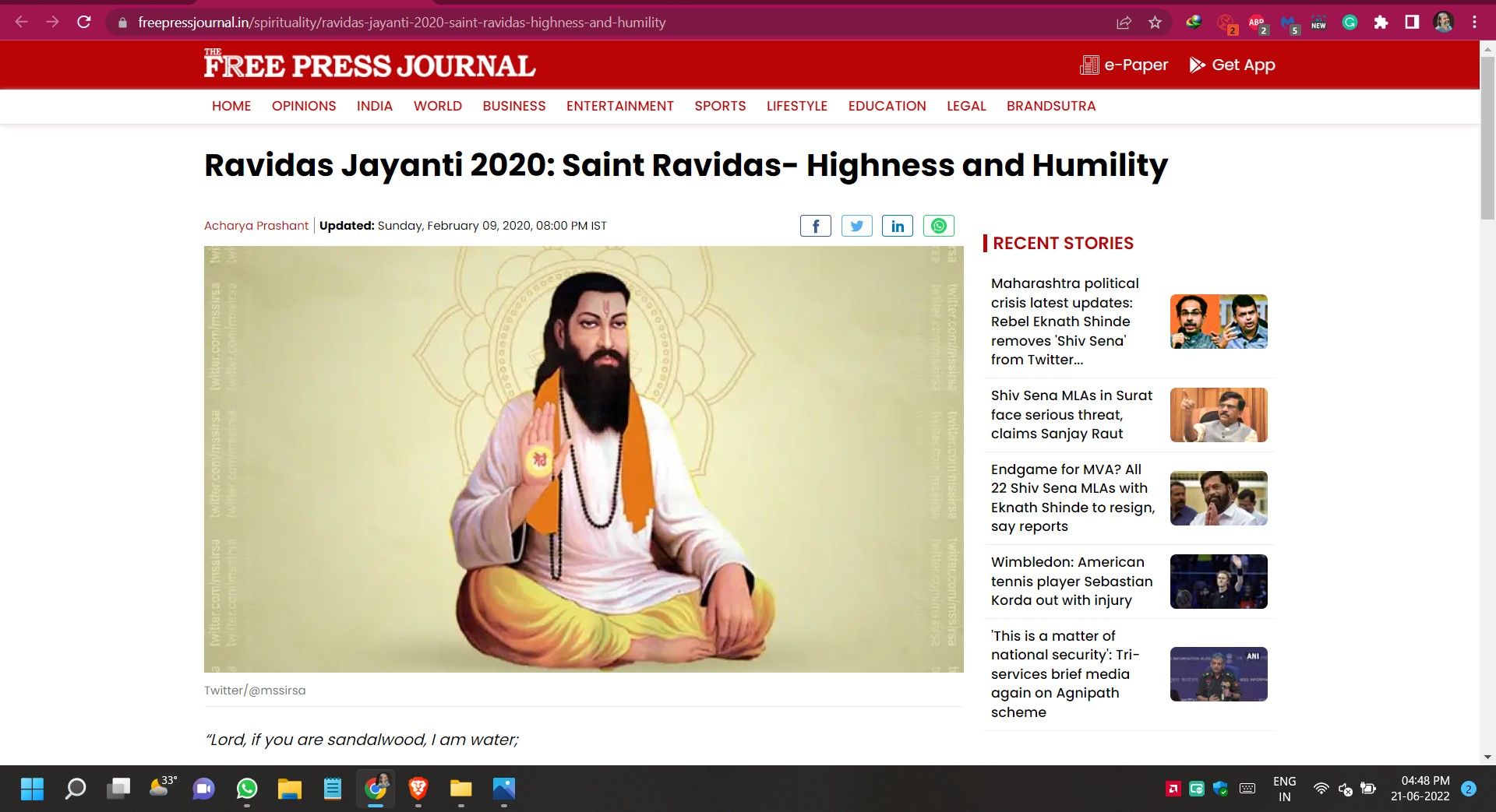 | Media Ravidas Jayanti 2020: Saint Ravidas- Highness and HumilityRavidas Jayanti 2020: Saint Ravidas- Highness and Humility | |