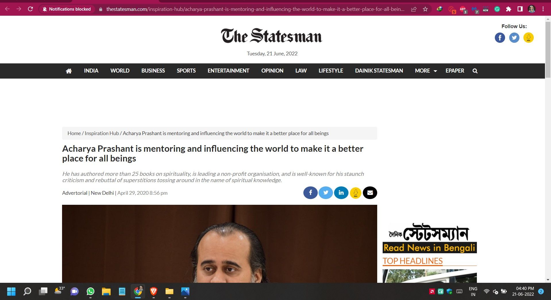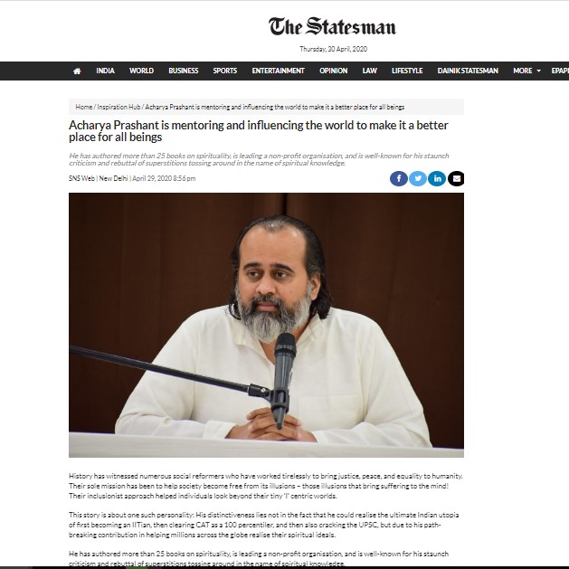 | Media Acharya Prashant is mentoring and influencing the world to make it a better place for all beingsAcharya Prashant is mentoring and influencing the world to make it a better place for all beings | |