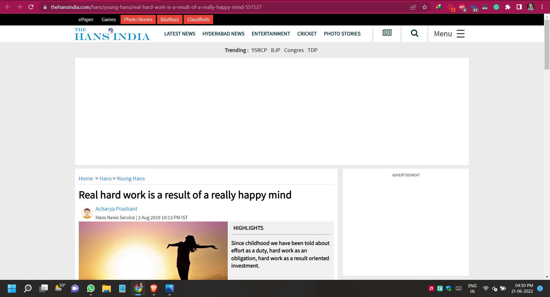 | Media Real hard work is result of happy mindReal hard work is result of happy mind |