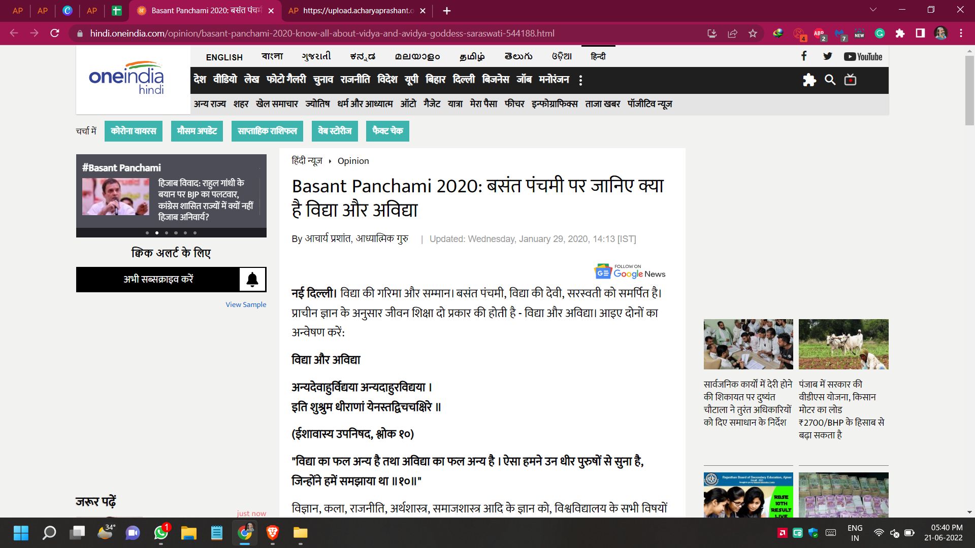 | Media बसंत पंचमी पर जानिए क्या है विद्या और अविद्याबसंत पंचमी पर जानिए क्या है विद्या और अविद्या | |